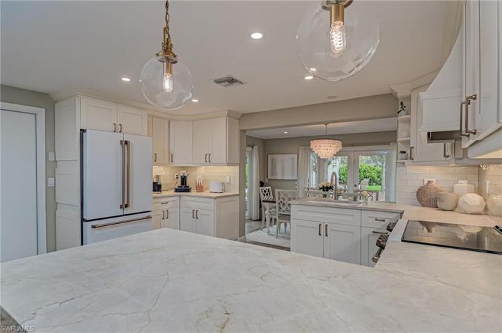 This recently remodeled 2B/2Ba home features a high-end finishes and a stunning backyard, located in Fort Myers, FL. This home offers a Chef's dream kitchen with Quartzite countertops, GE Café series appliances, soft close cabinets, deep inserted sink, and breakfast bar seating. Some of the other major upgrades include remodeled bathrooms, new flooring, plantation shutters, recessed lighting, 2022 ROOF, 2019 AC, 2023 hot water heater, new electric panel, freshly painted inside, and fresh landscaping. The Florida room offers a ton of natural light overlooking the private backyard. This backyard is ample for entertaining with a large paver patio, bonfire pit area, plenty of room for a pool, and shed with electricity and a roll down door. NO FLOOD ZONE! Located off McGregor Blvd in a quiet community, just minutes from beaches, shopping, and dining. Schedule your tour today!