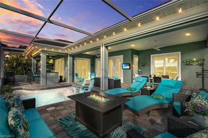 This custom-built home is a testament to exceptional quality. Built by a general contractor as their personal residence, there is meticulous attention to EVERY detail. Step inside and you're greeted by a home that boasts HIGHLY UPGRADED features throughout, both seen and unseen. Superior craftsmanship includes not only stunning tile work & carpentry, but things you can't see like superior insulation & specially designed HVAC that lead to super energy efficiency. The yard is thoughtfully designed for privacy, drainage & beauty. Breathtaking sunsets bathe the home in gorgeous light. A sparkling pool & waterfall overlook the golf course & 3 picturesque lakes. The outdoor oasis is perfect for entertaining with a fabulous summer kitchen with bar & ample covered space with added roll down storm screens. Car enthusiasts & hobbyists will appreciate the massive oversized garage, providing space for 3 cars & a workshop. This property offers not just a home but a true SW Florida lifestyle. With too many upgrades to list, you are invited to experience unparalleled quality and a true standout in its class. Come discover extraordinary features & LOW FEES that set this home apart from the rest.