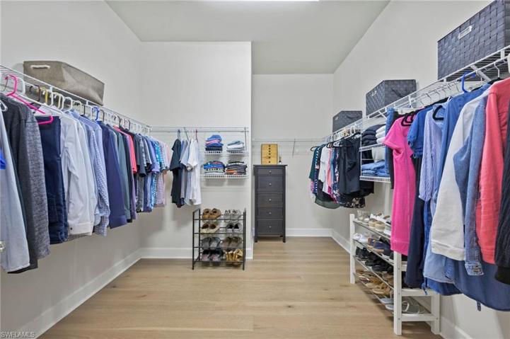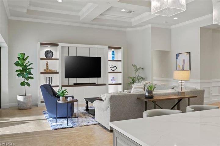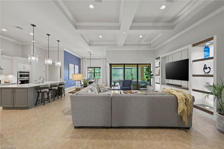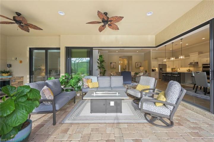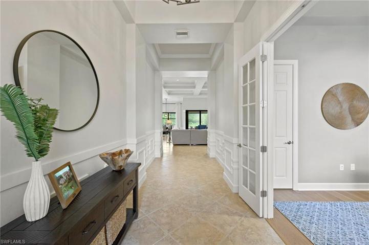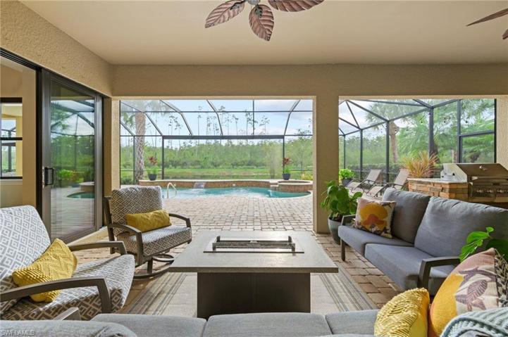 Get ready to fall in love with this open & modern Windsor II floor plan. Freshly painted interior offers over 3000 sq ft of single-story living space with an oversized lanai pool deck for year-round outdoor living. Located on a premium lot on an ultra-private cul-de-sac street in the Estate section. A regal entrance greets you into the grand foyer & vast great room with soaring coffered ceilings, gorgeous wood plank flooring, custom woodwork, new lighting & a recently renovated kitchen. New AC system was installed in 2023. The indoor & outdoor areas seamlessly flow with disappearing triple zero sliding glass doors opening to the outdoor kitchen & a saltwater pool with built-in hot tub with a vast & unobstructed lake & nature preserve setting. A gracious spa-like owner's suite, 3 additional bedrooms, home office, large finished laundry room with extra flex space, & 3 full baths (one is a pool bath). In addition, the clubhouse at the Preserve at Corkscrew offers pickleball, tennis, resort-style pool & spa, fitness center, yoga room, tot lot, & outdoor fireplace for socializing. Notably, this home resides outside the flood zone area & is minutes from Naples, I-75, RSW airport, & more.