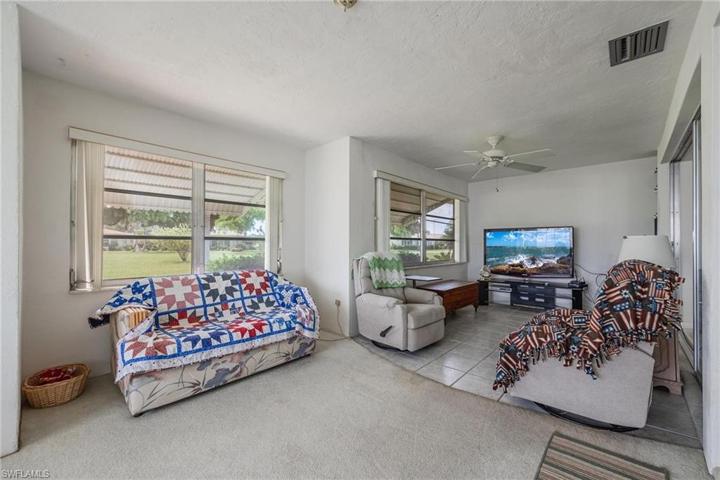 This fabulous villa has the feel of a single family home. Must see condo ! 2 very large bedrooms and 2 full bathrooms with attached garage PLUS a huge bonus room that can be used for whatever your need is...office, family room, tv room, grandkids room, 3rd bedroom, or a combination ! Very spacious living room area. 1800+SF of living area!! NEW air conditioner and NEW roof. Extremely Large laundry room with lots of storage. Peaceful view of landscaped area and pool. LOW maintenance fee includes care of grounds and heated swimming pool that is shared with only 24 unit owners. Bring your BBQ grill-this community allows a grill on your premises ! Incredible selling price for a unit in this much sought after over 55 community in So Fort Myers, Whiskey Creek Village Green. These units sell fast. Get in your golf cart and head to Whiskey Creek Country Club just a few blocks away! Restaurant, golf course, card clubs, social activities and more. Very reasonable fees. Walking and biking paths throughout entire community. Close to beaches, restaurants, shopping, Twins and Red Socks stadiums. Location, location, location ! Come and see!