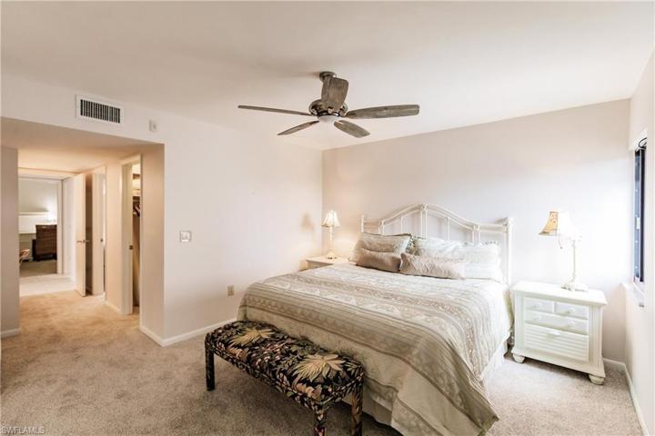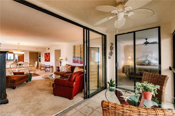 Peaceful lake & fountain view from this top floor end unit with a carport close to the building. Updates in this 2 bedroom 2 bath, light and bright condo include the kitchen with newer shaker cabinets, stainless appliances, raised-center ceiling, open L counter and tiled floor. The baths have updated tile, vanities, lighting and commodes. The southern view is tranquil from the screened and acrylic-enclosed lanai, overlooking the lake & fountain. New primary bedroom and kitchen impact windows, and a new electrical panel have been installed. A new impact dining room window coming soon. Come enjoy the good life at The Landings Yacht Golf &Tennis Club, a highly active, gated, waterfront country club community with beautiful grounds, a GULF access marina via no bridges, and lots to do. Your very affordable monthly club fee INCLUDES AMENITIES for two of 18-hole golf, tennis on 13 Har-Tru courts that are lit for night play, pickleball, a wet or dry marina slip for up to a 65' boat, waterfront picnic area, 2 dining venues, clubhouse, fitness center, heated resort-style pool, bocce & more. See for yourself why The Landings is SW FL's best kept secret!