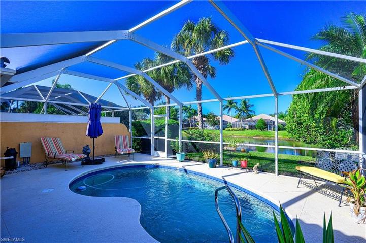 THIS BEAUTIFUL DIVOSTA CAPRI POOL HOME IS LOCATED IN VILLAGE WALK OF BONITA, THE MOST SOUGHT-AFTER COMMUNITIES IN THE AREA. THIS 2 BEDROOM, 2 BATH, 2 CAR GARAGE POURED CONCRETE VILLA POOL HOME IS BEING SOLD TURNKEY. JUST BRING YOUR TOOTHBRUSH AND SWIMSUIT. THIS HOME BOASTS PORCELAIN TILE FLOORS THROUGHOUT WITH BAMBO0 WOOD FLOORING IN THE MASTER BEDROOM **RECENT NEUTREL PAINT IN LIVING AREA** PLANTATION SHUTTERS ON ALL WINDOWS, CENTRAL VACUUM, NEWER A/C UNIT AND HOT WATER HEATER. SHORT WALKING DISTANCE TO THE AMMENITY-RICH TOWNCENTER WITH A HEATED RESORT POOL, HEATED LAP POOL, 24 HOUR STATE OF THE ART FITNESS CENTER, 3 BOCCE BALL COURTS, 8 LIGHTED HAR-TRU TENNIS COURTS WITH STADIUM SEATING, 3 LIGHTED PICKLEBALL COURTS, BASKETBALL COURT AND TOT LOT AREA. THE TOWNCENTER BOASTS A GAS STATION, CAR WASH, RESTAURANT, BAGEL STORE, POST OFFICE, SPA, HAIR SALON, AND ICE CREAM SHOP. THE TOWNCENTER EMPLOYS A FULL TIME LIFESTYLE DIRECTOR, THREE BALL ROOMS FOR SHOWS AND DANCES, CARD ROOMS, A LIBRARY AND COMPUTER ROOM.... ALL THIS, AND ONE OF THE LOWEST HOA FEES AROUND, WHICH INCLUDES YOUR BASIC CABLE AND HIGH-SPEED INTERNET (FIBER-OPTIC) WITH YOUR HOA FEES...HURRY!!!...DON'T MISS THIS FABULOUS TURNKEY CAPRI POOL HOME...