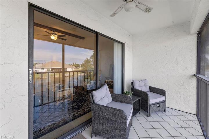 Live the SOUTHWEST FLORIDA lifestyle in this newly renovated and Turnkey, WATERFRONT, 55+ Condo. The perfect place to relax in the sunshine. 2 Bedrooms, 2 Bathrooms and beautiful water views from this 2nd floor unit. NEW ROOF. New living and dining room furniture & updated Kitchen. The open living and dining area has just been painted, creating an airy and inviting atmosphere. Freshly painted Master bedroom with accent wall, master bathroom, Guest bedroom and bathroom. Updated, beachy window and door coverings throughout. Enjoy your morning coffee or tea, meals or an evening beverage on your Balcony, overlooking the CANAL. Watch the morning sunrise & evening sunset on your newly screened Lanai. Warm spring mornings await you. Six new Panel doors, outdoor lighting and Ceiling fans have recently been replaced. Washer/Dryer in unit. This community offers a POOL & Clubhouse, Boat Dock, Shuffleboard courts, Grill area, covered parking, extra storage space and low Condo fees. Within close proximity to golf courses, shopping, dining and local activities. Year-round Farmers markets, festivals, parades and fairs throughout this beautiful city. Cape Coral is a highly desirable and wonderful location to live, vacation and invest. If you are looking for a lovely place to spend your winters or all year long, this Condo is just right for YOU!