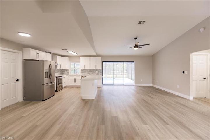 WOW... Check out this Completely Re-Imagined Single Family Home with Modern Upgrades on an Oversized Corner Lot with tons of Privacy. Excellent Fit and Finish including: New Roof 2024 with Industry First Titan Upgraded Shingles - Windguard Warranteed up to 160 mph, All New Pool Equipment, New Water Heater, New HVAC, New Kitchen and Baths including Snowflake Speckled Quartz, New Real Wood Shaker Cabinetry with Soft Close doors and drawers, New Stainless Appliances with Hood Fan, New Luxury Vinyl Plank flooring throughout and all new modern 6 inch baseboards throughout. Newly painted inside and out with top of the line Sherwin Williams paint. Showroom quality epoxy garage floor with speckles. Brand New Washer, Dryer, Laundry Tub and New Landscaping. Discover this hidden Gem of a neighborhood in Bonita Springs and enjoy the privacy with a protected preserve area and corner lot. Perfect for Relaxing or Entertaining with Friends and Family!