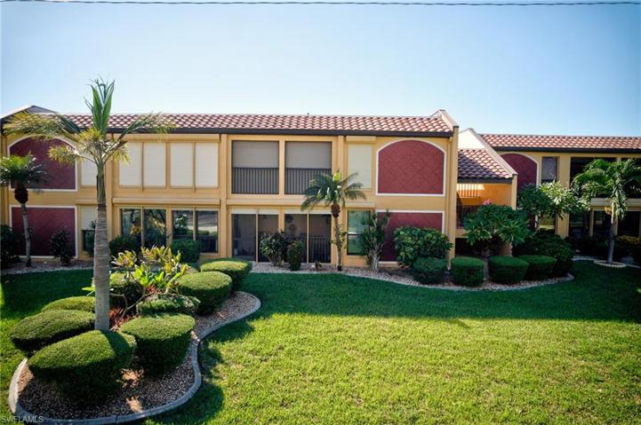 Sailboat Access Community 1st Floor Condo with 1 Car Garage just steps to the Pool. Enjoy the Sunset with a glass of wine on the Lovely Observation Deck. One of the most desirable condo locations off Beach Pkwy near Jaycee Park! The charming 2 bedroom, 2 bath condo is just a quick walk to the Caloosahatchee River & its scenic walking paths. You'll love the convenience of being just minutes away from Downtown Cape Coral, with great shops, restaurants, and entertainment. What makes this condo truly unique is the rare inclusion of a 1-car garage, something that's hard to find in most condos and it's Pet Friendly for 1 dog up to 20 lbs. There is a boat dock available for lease. You'll also appreciate the many amenities offered by this 55+ community, including a beautiful pool, benches overlooking the water and the option to purchase a boat slip. Inside, you'll find spacious bedrooms, a comfortable living room, & small den area that's perfect for an office or reading nook. The condo is move-in ready, with plenty of storage space. The HVAC is less than a year old. Hurricane Shutters are on all on windows. With its prime location, garage, and community amenities, it's sure to go quickly!