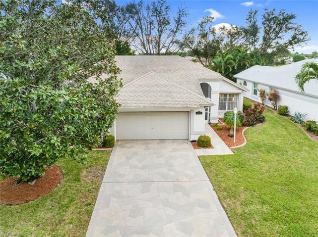 *NEW ROOF TO BE INSTALLED BY SELLER BEFORE CLOSING* Numerous renovated/updated features in this 3 bed, 2 bath home in the community of Country Creek with large mature lush landscape throughout, plus golf is included! Completely renovated in both baths, new pavers on the lanai and front lanai/entryway, replaced all interior ceiling fans, light fixtures, ductwork, surge protection throughout, built-in compact freezer/beverage cooler and even a tiled garage floor! In 2020 exterior was re-painted with new fixtures, garage door power screen and new kitchen appliances. Plus in 2022 a new A/C compressor. Master en-suite is painted in a lovely soft coastal color with upgraded white cabinetry, dual sinks and walk in shower surrounded from floor to ceiling in large tile. Extended covered lanai, for Florida's sought after outdoor lifestyle, boasts plenty of room for an additional seating room, dining area and views of the beautiful green fairways, perfect for entertaining. Clubhouse offers a restaurant, bar, many social activities, 5 pools, 5 tennis courts, bocce ball, premier 18-hole executive golf course plus more! Only minutes from the airport, Herz arena, FGCU, outdoor shopping malls, dining and only a 20-minute ride to Bonita's white sandy beach!