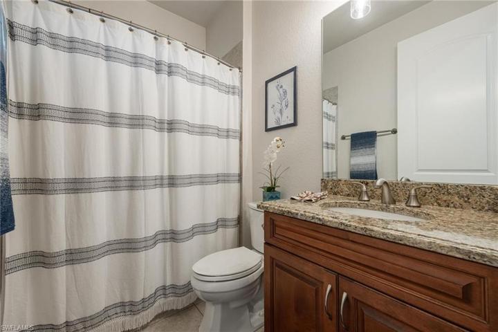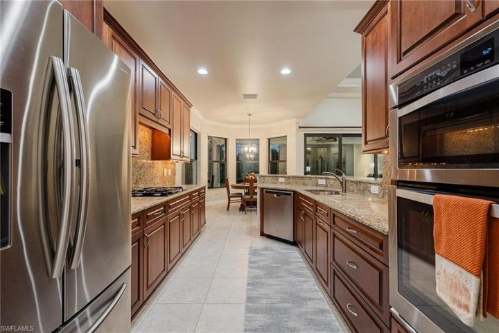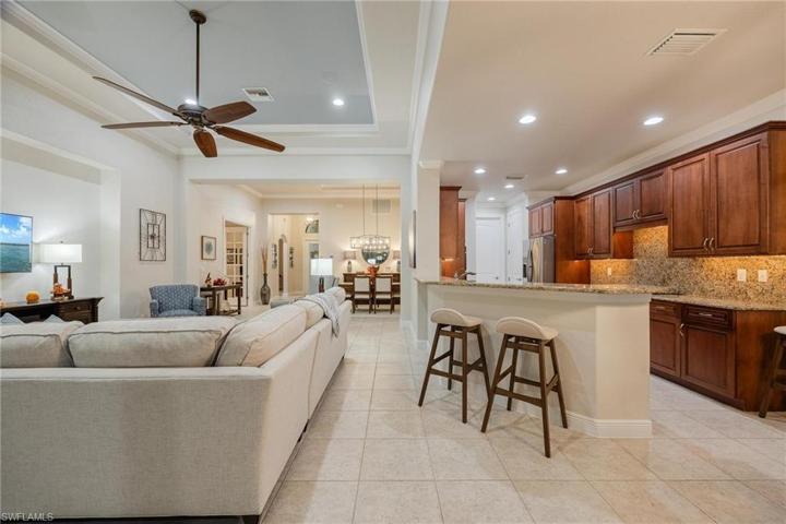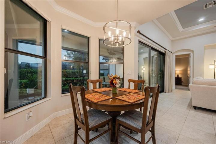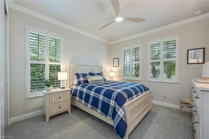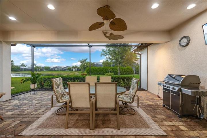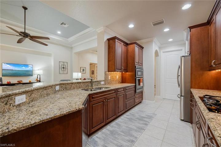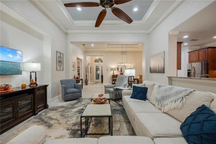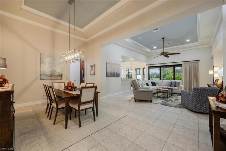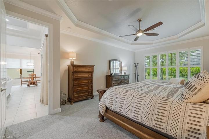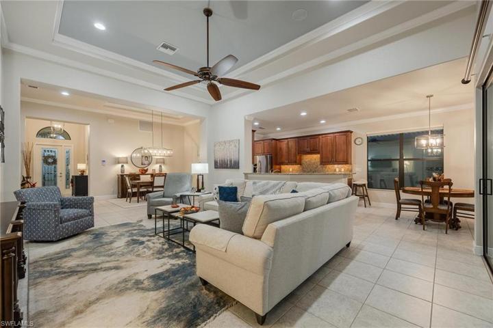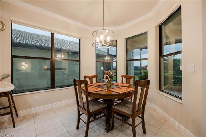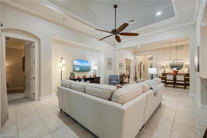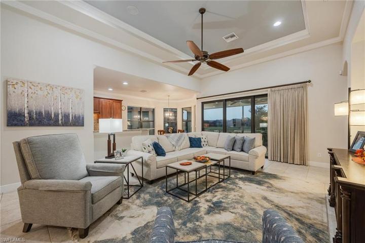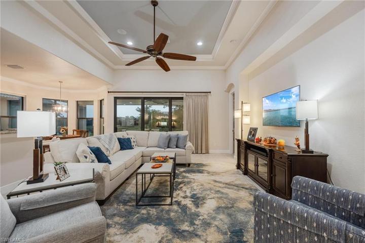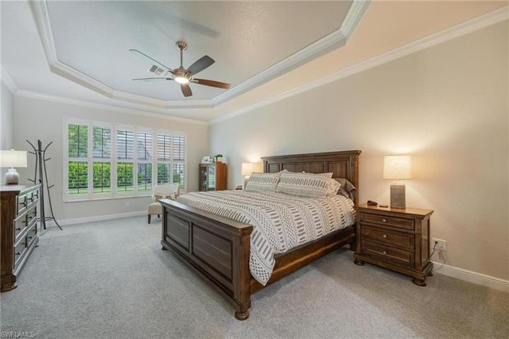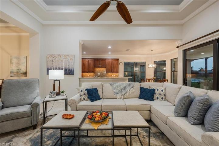 Step into luxury with this exceptional Toll Brothers home in the exclusive Bonita Lakes community! Boasting rare features and countless builder upgrades, this residence is a true gem that is now available for your consideration. The interior of this home exudes sophistication with 8’ doors, 11’4 ceilings with double tray ceilings & crown molding, neutral tile floors in living, dining, den, kitchen, and hall areas. Gas kitchen with 42” wood cabinetry, granite counter tops & backsplash, stainless steel appliances. Gas dryer, water heater and whole house generator. The thoughtful design continues with custom built ins in bedroom closets, floor outlet in living room, newly painted interior (satin finish), LED Lighting throughout, automated fans, custom plantation shutter on windows and blinds. Situated on a prime deep lake lot within the community, this property offers a picturesque setting. Exterior highlights include impact glass doors and windows, upgraded tile roof, extended lanai by 5 ft, custom landscape lighting, 4' extended garage with additional storage and new exterior paint with 10 year warranty (satin finish).