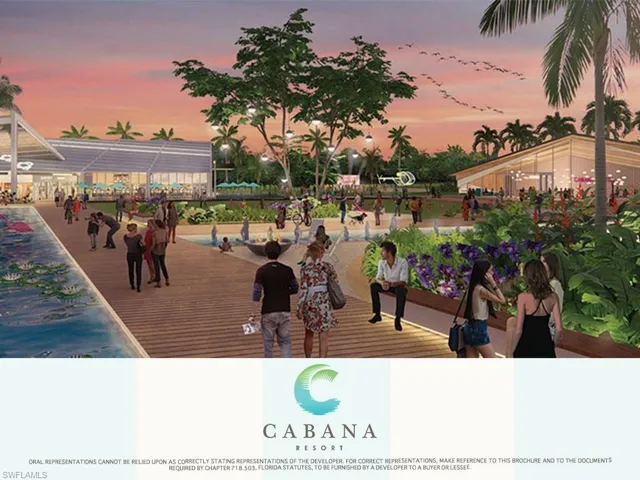 C667 - Cabana is bringing vacation destination amenities and day-through-night family focused attractions to Bonita Springs. It will elevate Florida style fun in the sun to state-of-the-art standing. Its 7 acres of Resort Pools feature a winding Lazy River, βsurfableβ triple Flow Rider water feature, a pool with multiple water slides, all within 3 pool areas. 7 stories of energized contemporary architecture introduce a fresh face to Gulf view condo living with teak trimmed, unit-wide glass balconies and spacious floorplans, all bookended by massive ground to rooftop art installations. Cabanaβs Grand Food Hall is an airy and open expanse sheathed in glass for 360* views. Itβs designed for boardwalk strolling, casual to fine dining, shopping, sampling and socializing over brews, pop-up arts and Bonita-centric sights in a year round setting.