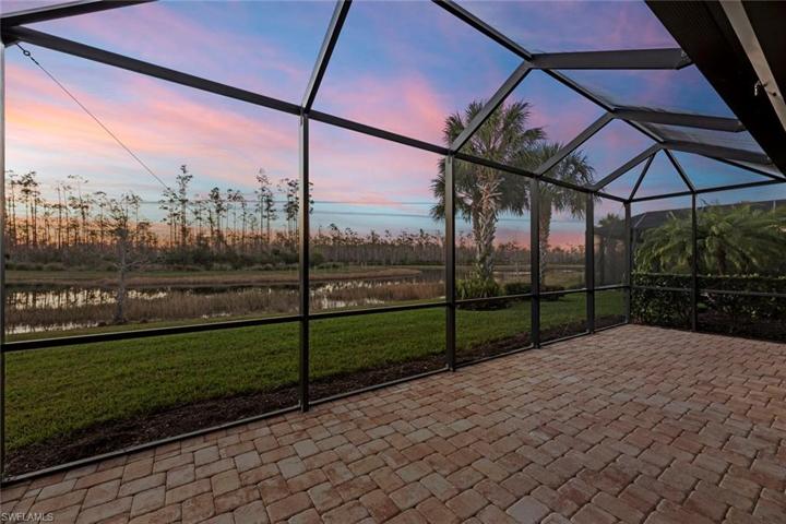 Embrace a lifestyle of luxury with this exquisite home on an ultra-private lot with plenty of room for a pool. Featuring the Cameron floor plan built by Pulte builders, it offers 3 bedrooms, a den, 3 FULL bathrooms & a 3-car garage with a 4-foot extension. Inside, you’ll be dazzled by the gorgeous French tille and a GOURMET kitchen complemented by double center islands, custom backsplash, stainless steel appliances, rich cabinetry, granite countertops & a built-in wine cooler & wine rack. The open layout feels light & bright from the abundance of natural light that enters through the triple-pane sliding door & numerous windows accented by plantation shutters. Additional interior features include crown molding, extra recessed lighting & high-end light fixtures. A haven of relaxation, the spacious owner’s suite boasts a lovely tray ceiling & an elegant en-suite with a tiled & glass-enclosed walk-in shower, dual sinks & granite vanity. Step outside to discover an expansive screened lanai with breathtaking LAKE & PRESERVE views. It’s the perfect place to unwind & enjoy the splendid sights & sounds of nature. For your convenience, the lanai has been pre-plumbed for an outdoor kitchen & the property features a new water heater. Nestled in the heart of Southwest Florida, The Preserve at Corkscrew offers residents exceptional amenities including a clubhouse, resort-style pool & spa, pickleball, tennis, basketball court, fitness center, outdoor fireplace & tot lot.