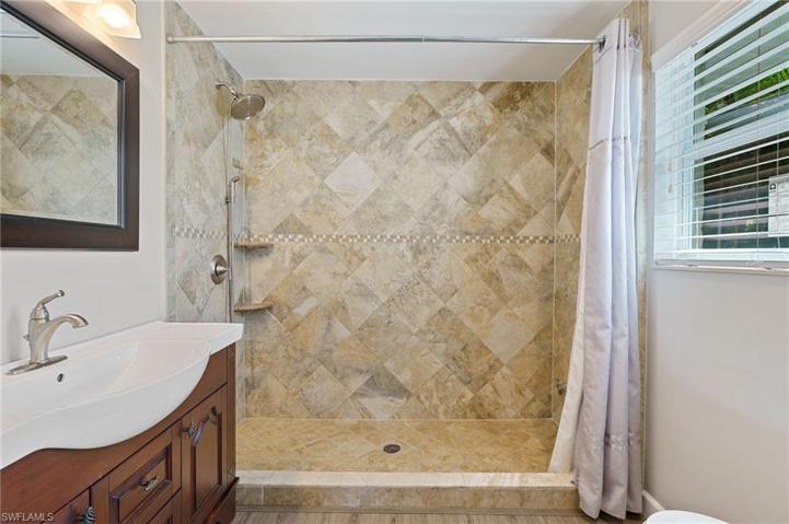 Welcome to this freshly remodeled salt water pool home that boasts 3 bedrooms and 3 full bathrooms, in a quiet and friendly neighborhood with no HOA fees. This home is conveniently located a short distance from the lovely Downtown Bonita Springs, just 5 miles to Bonita Beach, close to restaurants, shopping, hospitals and schools. New updates include,roof (Nov.2023), impact rated/hurricane windows (OCT 2023), luxury vinyl plank flooring (2022), water heater(2023) and chain link fence (2023). Also recent updates include: Air conditioning(2019), quartz kitchen countertops, bathrooms, lanai flooring and fresh paint inside and out. The property is located on an oversized double lot which allows building of additional living space. There is also extra parking available in the easement next to the home FREE PARKING for your RV OR BOAT.