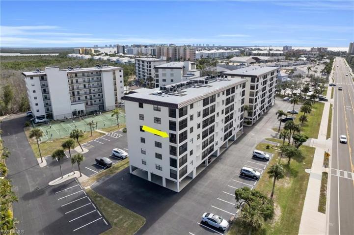 STUNNING Ocean and DREAMY SUNSET views! REMODELED 4TH FLOOR CORNER CONDO. 2 Bed / 2 Bath in ESTERO COVE condo is Completely REMODELED, with an OPEN CONCEPT Floor plan. Custom Kitchen & Cabinets with Quartz Counters. Hurricane windows and Sliders. Remote Hurricane Screens on Lanai (180 mph). NEW W/H, NEW A/C, NEW Roof. Low HOA fees! Enjoy Lovely SUNSETS over the Gulf of Mexico from your balcony! One of the BEST managed complexes on FMB. So many amenities, including LARGE Community pool, Tennis and Pickleball courts, fishing pier on the bay side, jogging and walking paths. Beach access across the street. Santini Plaza & Marina, Bars & Restaurants and shops within walking distance. Rare find, Hurry up, this will not last long!
