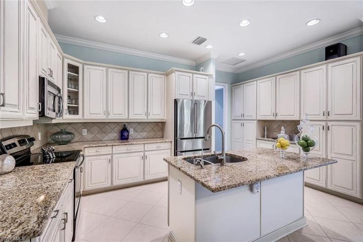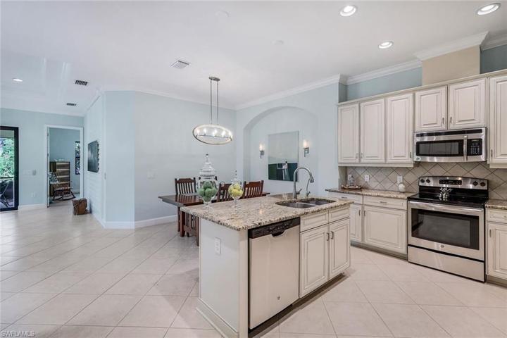 Experience the allure of the Barcelona Model in the Bonita Isles community, a spacious 2+ Den, 2 bath villa that harmoniously marries country cottage style with modern comfort. The moment you step up to the new modern entry door and enter you'll be impressed by the upgrades, from the abundant upgraded cabinetry and granite countertops in the charming kitchen to the tile throughout the living area, volume ceilings, and decorative woodwork. The hurricane impact windows and sliders offer peace of mind, while the crown molding, ceiling fans, and recessed lighting provide the perfect finishing touches. Enjoy a spacious primary bedroom with an en suite bathroom and a roomy walk-in closet. An additional bedroom, a full bath, and a large den add to the home's appeal. Situated in one of Bonita Springs' most desirable locations, this home features a private lanai with tranquil preserve views. It offers a roomy interior within a stunning community, complete with a clubhouse, social events, resort-style pool, tennis, playground, walking paths, two sparkling lakes, low HOA fees, and no CDD. This gem won't last long!"