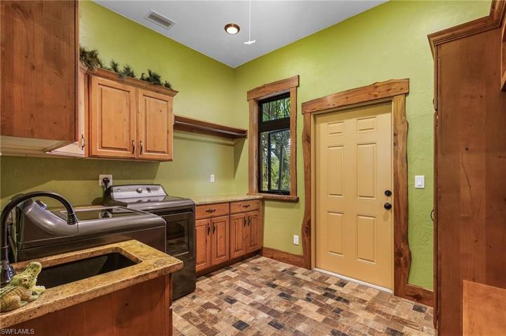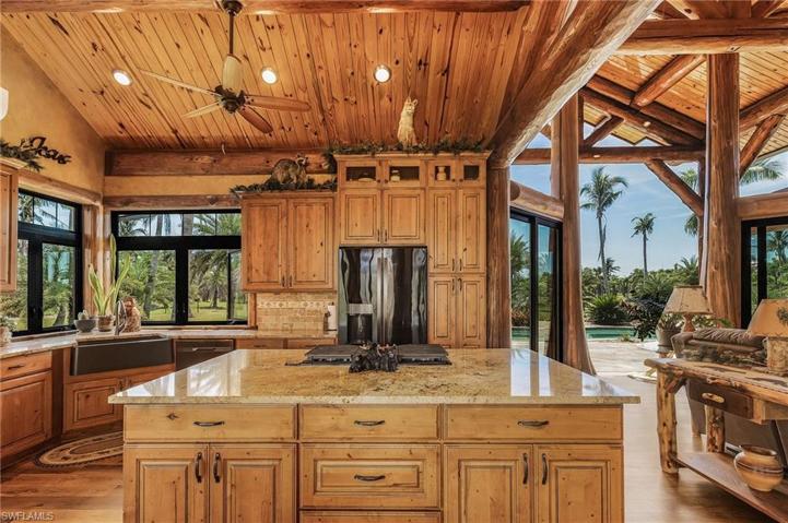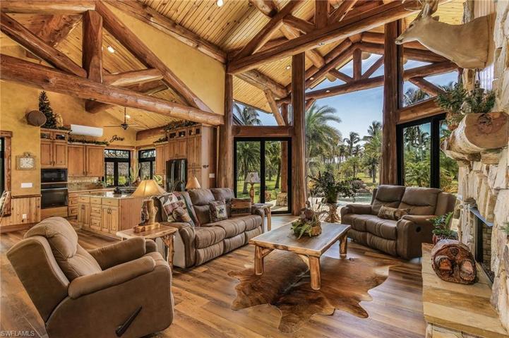 Stunning! Must see this sprawling 15-acre estate ranch home and farm offering the epitome of rural living while close to all the modern comforts of historic Tarpon lodge, Pineland marina & Cape Coral! This home is a one of a kind architect designed home; featuring handcrafted shipped in IDAHO LOG TRUSSES with 18’ tall CEDAR framed glass forest in the great room area & Live edge baseboards throughout the home. Enjoy the large saltwater pool with spa surrounded by travertine tiles and coy pond. The residence itself blends modern comforts with rustic charm! Large 500 gallon propane for gas stove, fireplace and pool. Reverse osmosis system for whole house. Oversized deep garage! Immerse yourself in the tranquility of nature and enjoy the barn-bring your farm animals! There is also a large WORKSHOP, outbuildings,Tiki hut, 2 BARNS, 2 wells, 5 small Ponds and enclosed bird sanctuary. Zoned AG means low taxes! Start a business-there are many mature large marketable palms as this used to be a tree farm! High and dry land 8 ft above flood so no flood insurance required. There is an additional 14 acres available with adjoining properties! Don’t wait, this amazing estate Ranch home is waiting for you!