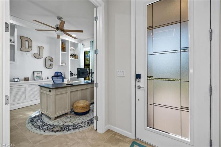 This isn't your cookie cutter home, this home was lovingly built with MANY UPGRADES during and after construction - including IMPACT RESISTANT WINDOWS AND DOORS, Custom Trim throughout, and upgraded tile flooring throughout entire home. 2021 BUILT and looks BRAND NEW! TANDEM GARAGE - use the extra garage space for storage, park your truck or large SUV, perfect spot for your golf cart or motorcycle! Many garages do not have room for the toys! The Kitchen features a Custom Built Butlers Pantry with beverage cooler, White Cabinets with pull outs and soft close drawers, glass tile backsplash, HUGE work Island with Quartz Counters, Newer Stainless Kitchen Appliances- including a raised dishwasher. There are Custom Cabinets in the Primary Bedroom Closet, Garage, and Laundry. The Primary Bedroom offers a huge glass enclosed Shower, dual sinks and is very spacious. The den could be used as a third bedroom, but is currently used as an office. This home looks like a model home and the furniture can also be purchased to make your move simple. This beautiful home offers tranquil preserve views from the screened lanai and grill your favorites on the custom built grill with work station!