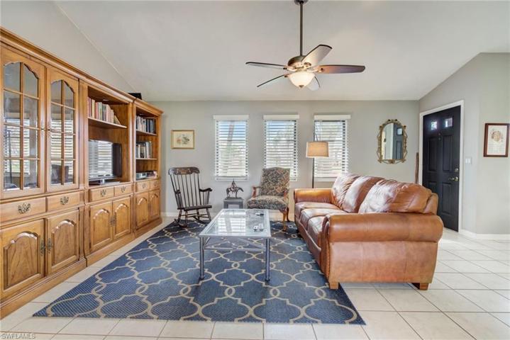 Are you a first time home buyer, downsizing, perhaps looking for the perfect spot to park your RV? If any of these ring true, this home fits the bill. Situated on an oversized lot in the Three Oaks community of San Carlos Park. The kitchen boasts a suite of stainless steel appliances and plenty of counter space. The living/dining area opens to the Florida room with walls of windows overlooking the gorgeous, lush yard and lake, has entertaining and dining areas AND a hot tub! This is truly the heart of the home! The primary bedroom has a walk-in closet and its own half bath. The second bedroom is also quite big and offers more terrific closet space. Storage abounds here with a 1 car, attached garage. There is a humongous shed that's separated into 2 areas, perfect for a workshop on one side and storage space on the other. It also has an AC unit to help keep you comfortable. The oversized lot has made it possible to have a driveway large enough to park a number of vehicles off the road as well as being able to accommodate a large RV. This home has been lovingly cared for and has dynamite curb appeal. Roof and HWH replaced in 2021. Polybutylene plumbing was just replaced! Take a tour!