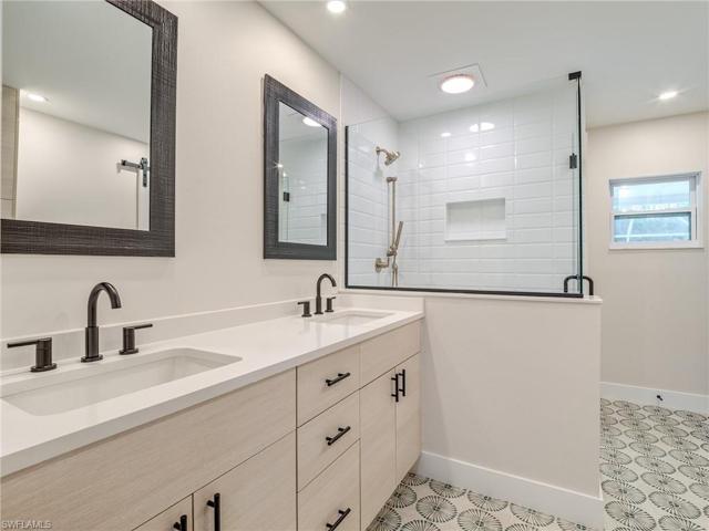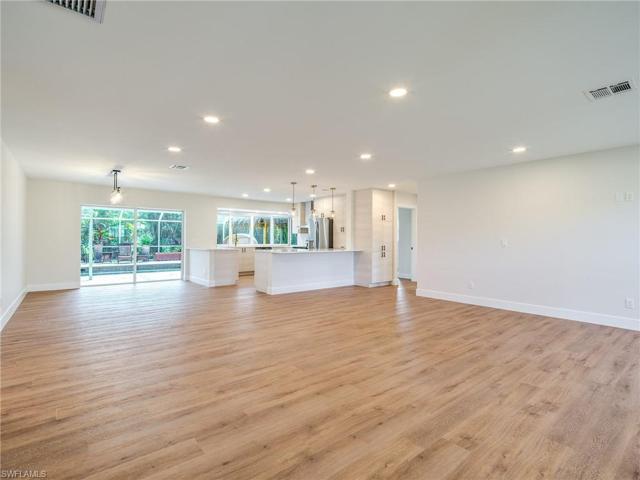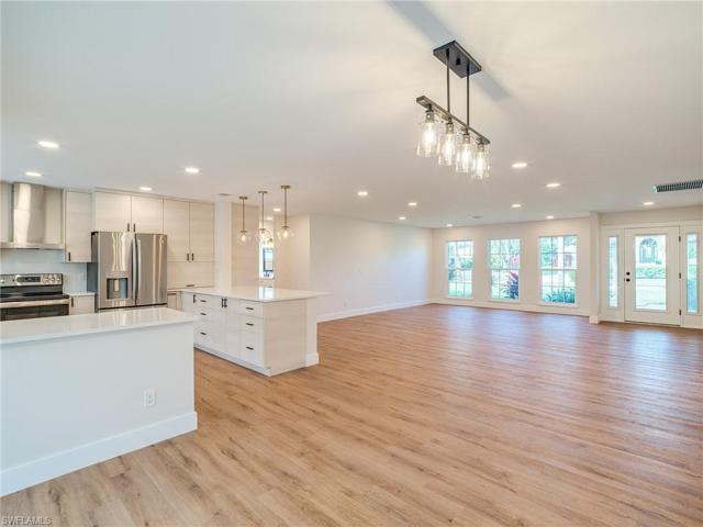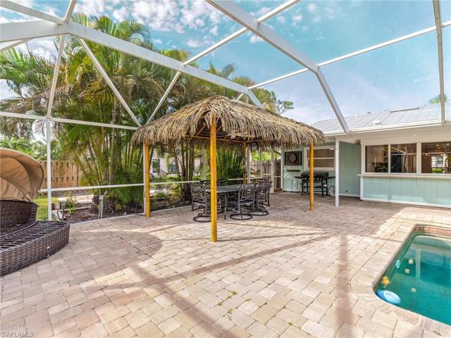 Completely remodeled top to bottom in 2023. Charming southern exposure pool home is situated on over 1/2 an acre & has 3BR, 2BA, 2 Car Oversized Garage & 2 separate driveways w/room for all your toys! Open great room living gives this home that perfect Florida living feel. Kitchen features all new upgraded cabinets, appliances and quartz countertops. Kitchen has pass through window to your private tropical oasis! The enormous screened lanai with tiki hut, grilling area and pool make this home perfect for entertaining. Owners suite was perfectly remodeled and has its own sliders to the lanai/pool area. Split bedroom floor plan offers 2 additional spacious bedrooms and gorgeous remodeled full bath.