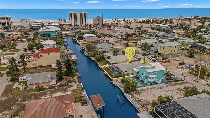 DREAM LOCATION+CANAL+POOL HOME Be a part of designing and renovating this amazing gem on the highly desirable South end of Fort Myers Beach! This canal front location allows you to have direct boat access right out to Estero Bay and minutes into the Gulf of Mexico to see Dolphins or enjoy beautiful sunsets. A very short walk to the beach! This pristine pool is ready for your enjoyment while the house is being remodeled. Large open concept living space. Two car garage. All new sidewalks around house. New 200 amp electrical service. Outside wrap around wet bar entertainment area. Fishing pier along canal. The interior of this home is extremely clean down to the studs and ready for you to design and remodel your dream come true home, where you will own you own piece of paradise. STAGED PHOTOS ARE REPRESENATIONS OF A POSSIBLE LOOK AND FEEL OF THIS AMAZING HOME IF IT WAS FINISHED IN THE FUTURE, THEY ARE NOT ACTUAL PHOTOS.
