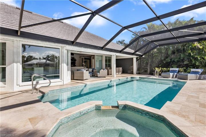 Located in the gated,sought after community of Catalpa Cove.This DIRECT GULF ACCESS waterfront masterpiece has a coastal flair that will elevate your senses!Deeded dock has a 12,000 lb lift(#58).This 3 bedroom+den + T.V. room,3.5 bath home offers extensive remodeling w/an open concept.This south facing saltwater,heated pool home has a NEW ROOF Dec 2023,New A/C,whole house generator,hurricane protection including new impact windows & hurricane screens,new int./ext. paint,lighting fixtures,interior doors & hardware.New landscaping & outdoor lighting.Home is prewired for an ELECTRIC CAR!As you enter into this lavish home there are shiplap walls,soaring ceilings,exposed faux wood beams.Engineered hardwood floors& tile.A chef's dream kitchen offering an amazing island,quartz countertops,wolf stove,custom cabinetry/pantry.Living area has a wall of sliders that open onto your expansive lanai to experience quintessential indoor/outdoor living with tranquil views of the lake.Step into your primary wing to find soothing views of the lake,quiet seating space,unique tray ceiling.Primary bath has a STEAM SHOWER,soaking zen tub,dual vanities,private water closet.The split plan offers 2 add. B/R w/ensuite baths.Enter into your office/den thru stunning barn doors w/murphy bed.The add. room is a reading,t.v. room but the ideas are endless!AMAZING VIDEO NOT TO MISS!