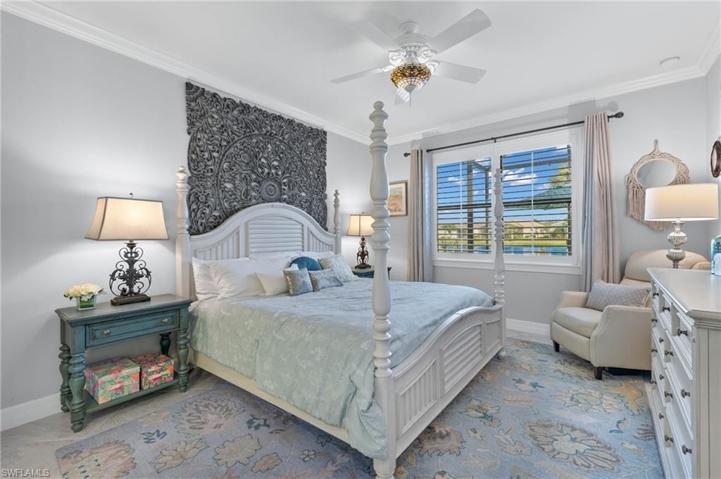 Step through the front door of this stunning 2BR+Den, 2 BA home and notice all the upgrades. From the glass front door, you will appreciate the tile on the diagonal throughout the house, crown moulding, 8 ft doors, 5 inch baseboard, glass French doors to the Den, recessed lighting and Plantation shutters. The Kitchen boasts white cabinets with undermount lighting, quartz countertops, a large island, pantry and stainless steel appliances. The added Sunroom allows the Florida sunshine to flow through the open concept living areas. The spacious Primary Bedroom features an ensuite Bathroom with long dual vanity and a custom closet system. Enjoy your dream home with these "practical upgrades": HURRICANE IMPACT GLASS, screened Front Entry, large Laundry Room with sink, cabinets and extra storage. There is a whole house water softener/filtration/reverse osmosis system. The insulated garage showcases a mini-split AC and abundant overhead storage. Relax and enjoy your morning coffee from your own outdoor oasis with 8' x 12' pool and extended lanai. Stop by the clubhouse and check out the Bridgetown amenities including two pools, fitness center, bocce, pickleball, tennis and play area.